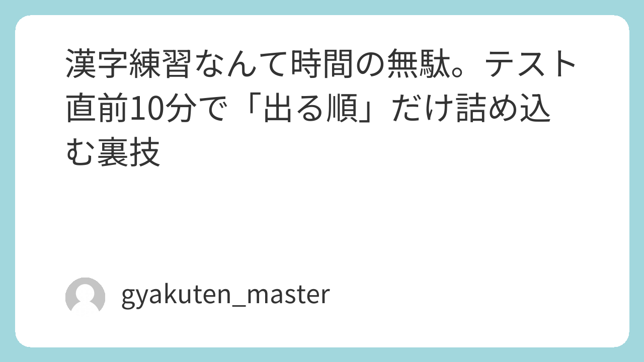 今日は、無駄な書き取りを一切排除して、テスト直前のわずかな時間で確実に加点を勝ち取る、最も「ズルい」漢字攻略法を教える。
